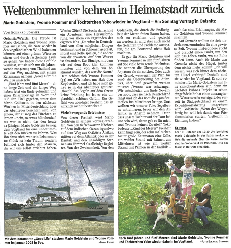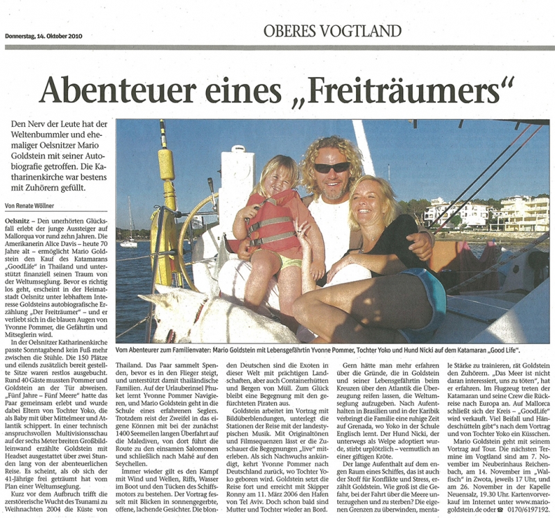 Mario Goldstein, Yvonne Pommer und Töchterchen Yoko wieder im Vogtland - Am Sonntag Vortrag in Oelsnitz