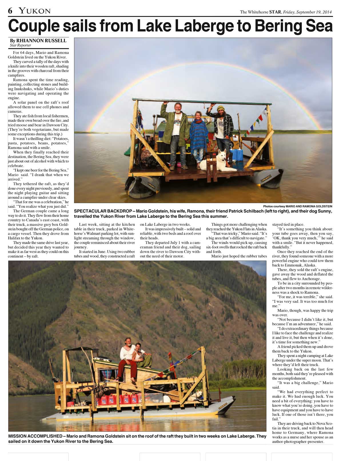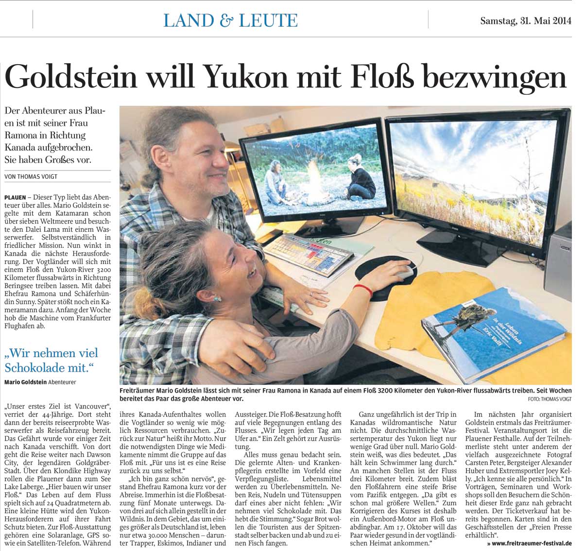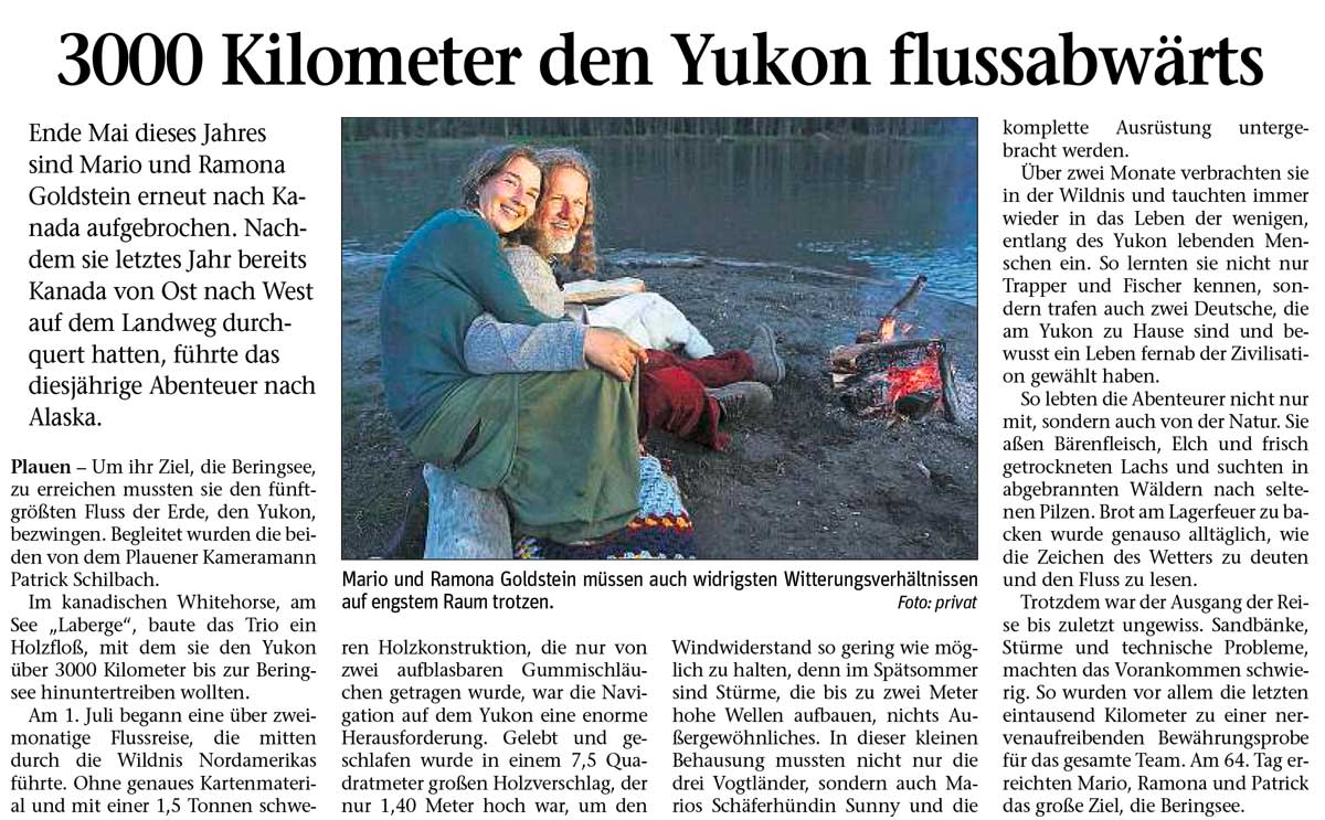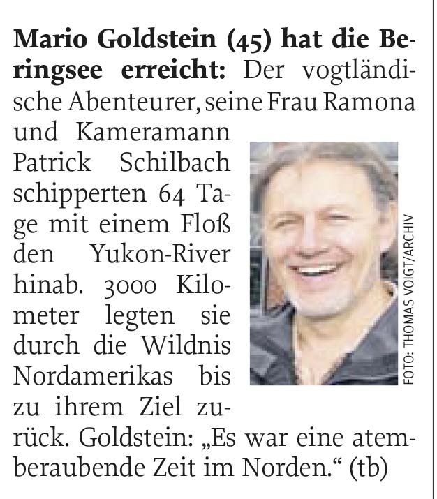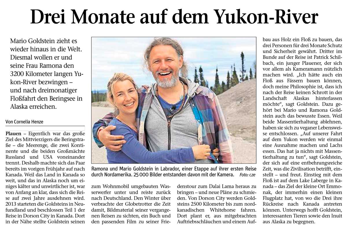 Mario Goldstein zieht es wieder hinaus in die Welt. Diesmal wollen er und seine Frau Ramona den 3200 Kilometer langen Yukon-River bezwingen – und nach dreimonatiger Floßfahrt die Beringsee in Alaska erreichen.