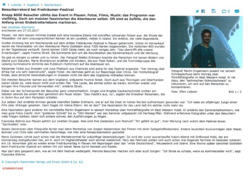 Live-Reportagen, Messe und Musik: Das 3. Freiträumer-Festival in Plauen vom 24. bis 26. März hält zahlreiche Highlights bereit.