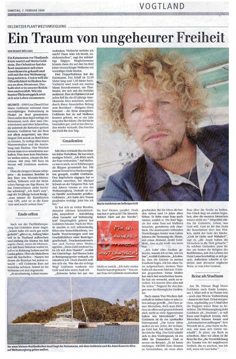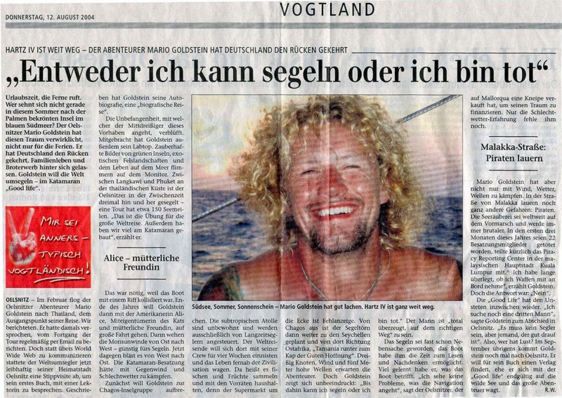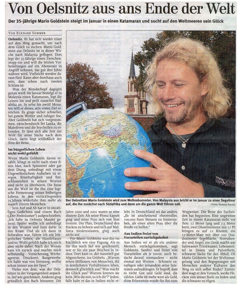 Es hat sich wieder einer auf den Weg gemacht, um nach dem Glück zu suchen. Mario Goldstein ist dieser Woche nach Malaysia geflogen. Dort legt der 35-jährige einen Zwischenstopp ein und will die letzen Vorbereitungen auf ein Abenteuer in Angriff nehmen, das gut drei Jahre währen wird. Vielleicht werden daraus auch fünf. ...