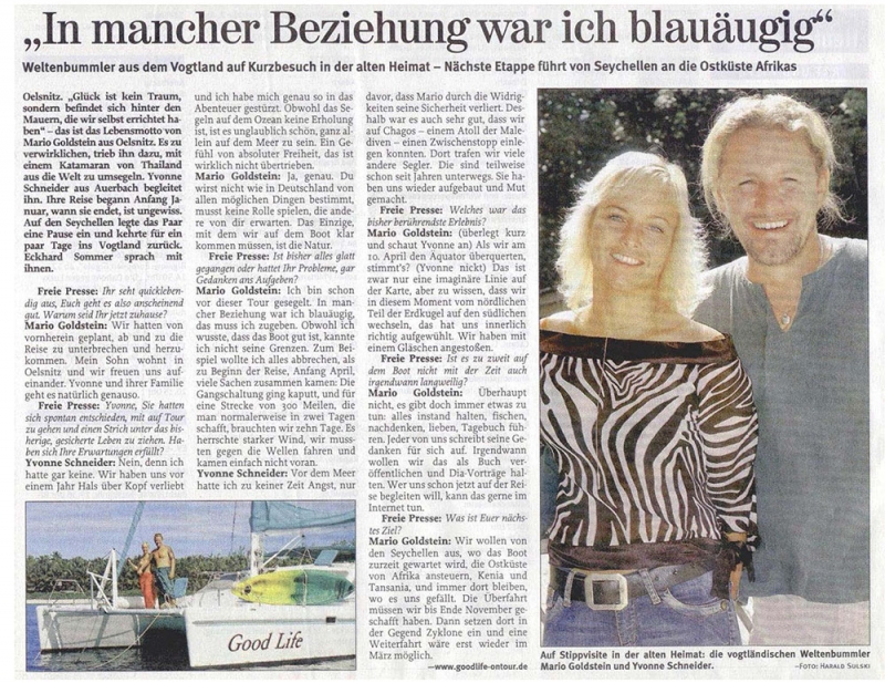 Weltenbummler aus dem Vogtland auf Kurzbesuch in der alten Heimat - Nächste Etappe führt von Seychellen an die Ostküste Afrikas