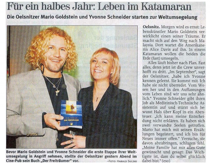 Die Oelsnitzer Mario Goldstein und Yvonne Schneider starten zur Weltumsegelung.