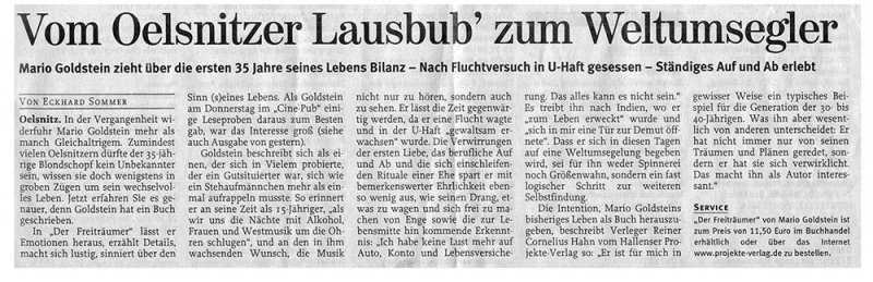"Der Freiträumer" heißt der Erstling des Oelsnitzer Abenteurers.